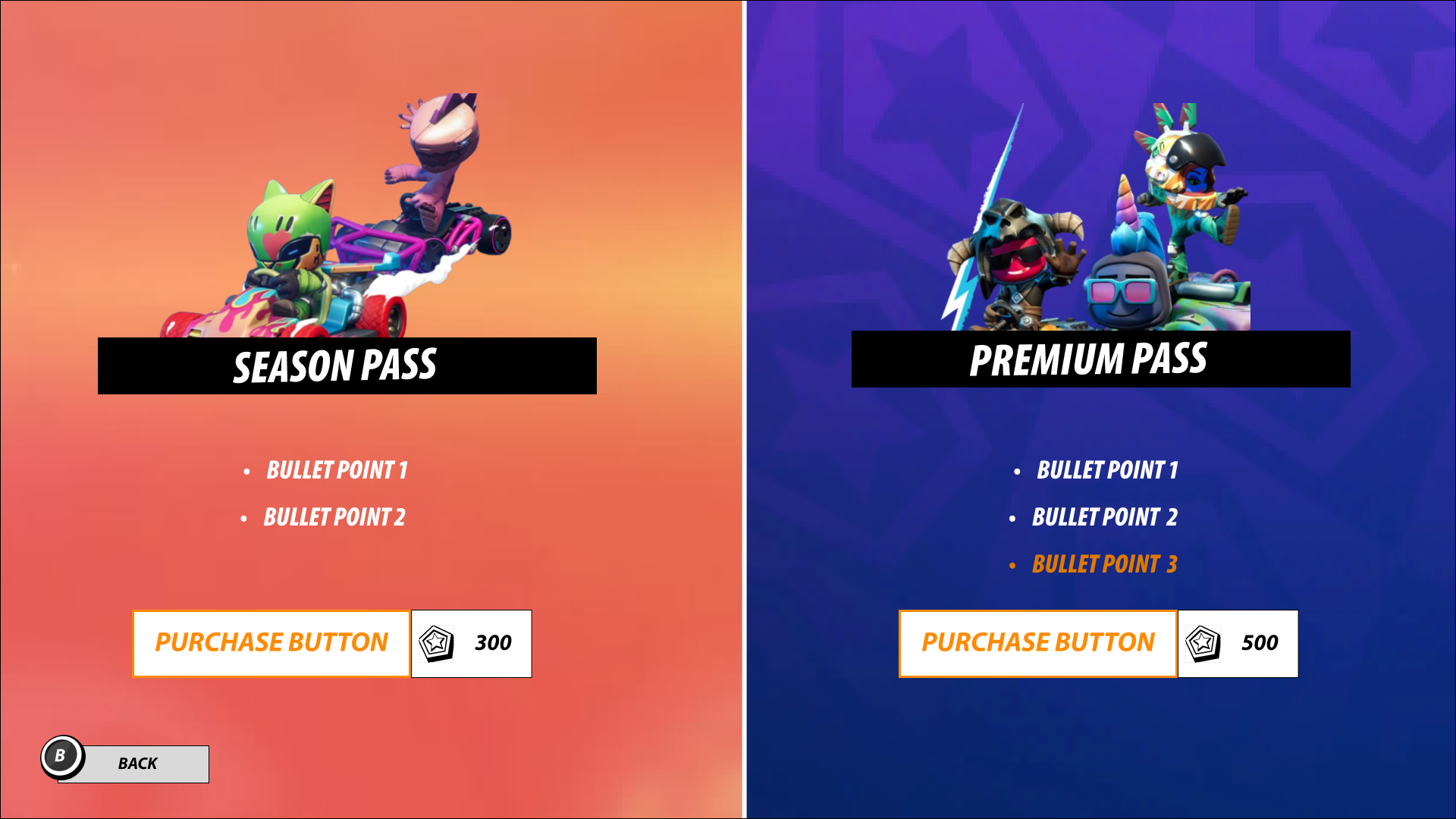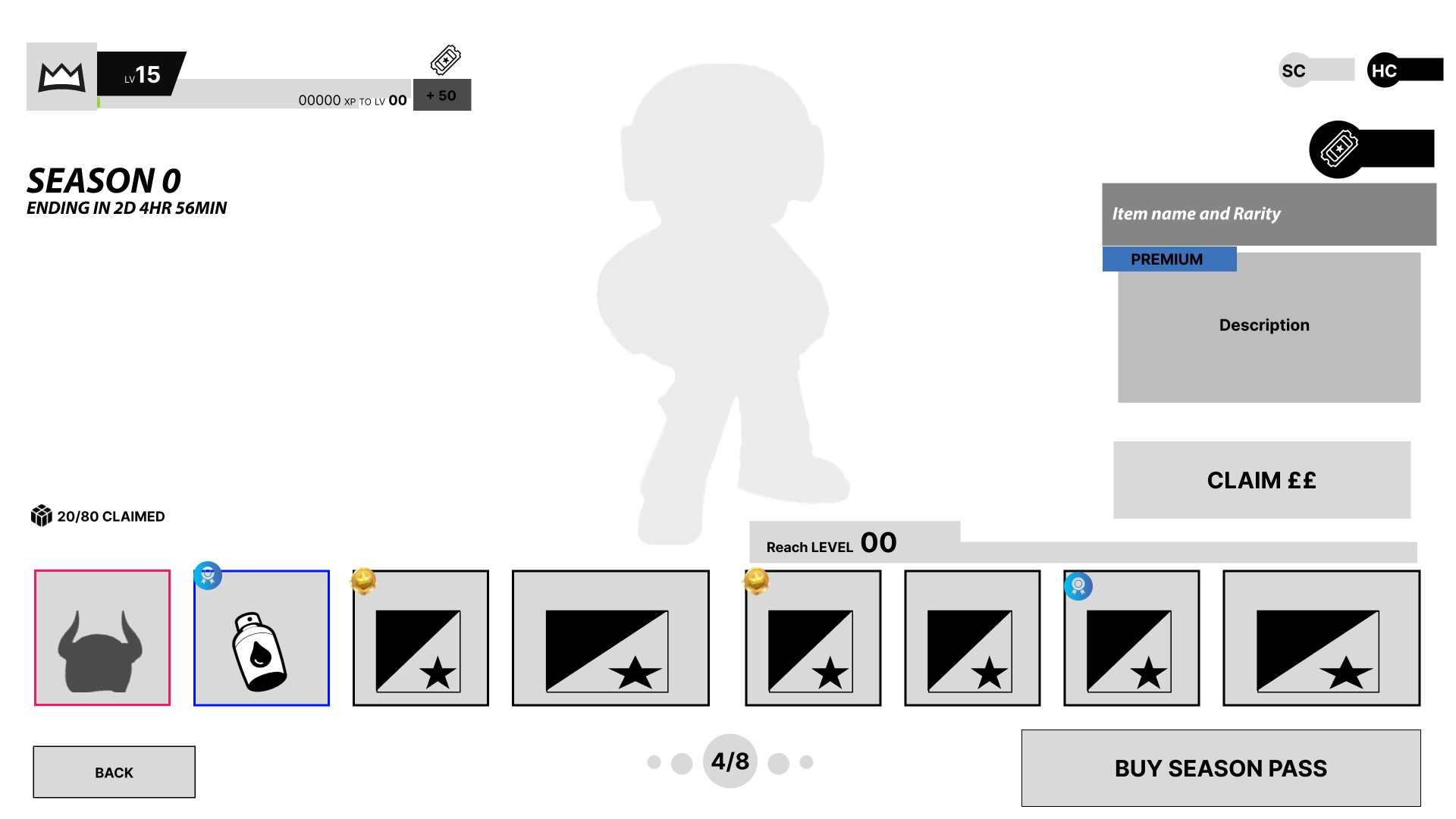 Designing a mockup of the pass purchase page, comparing the passes side by side so that the player understood what their money could be spent on