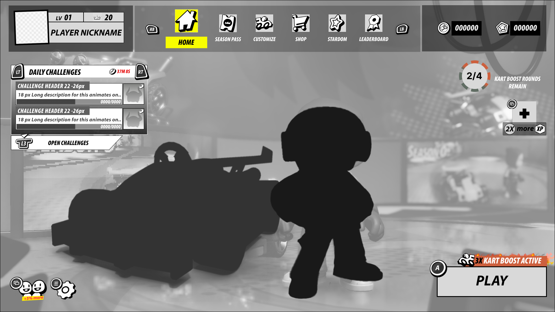 For Stampede, we wanted to blend the accessibility of a Mario Kart-style game with the Battle Royale genre to create something for a broader, casual audience. The goal was to introduce UI that was seamless, intuitive and fun to engage with. We went about this in a multitude of ways: