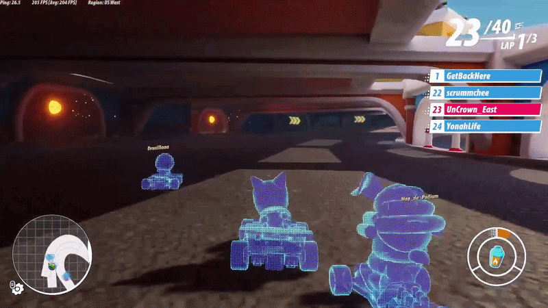 Creating a responsive HUD that was explicit and clear about the current status and requirements of a player. This meant players can focus on the race, and their attention was only directed to certain HUD elements if it was urgent.